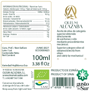 Nuestra variedad Hojiblanca Eco se caracteriza por su sabor y aroma a hierba recién cortada, alcachofa y plantas aromáticas. Su entrada en boca es dulce, con un amargor ligero y un picor final muy localizado en la boca. Ideal para cocinar, aderezar ensaladas o comer en crudo. Este envase de 100 ml es ideal para regalar.